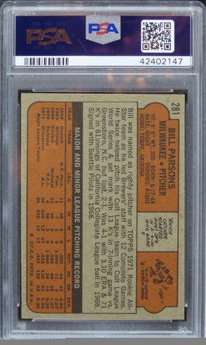 1972 Topps Bill Parsons ROOKIE RC #281 PSA 9 MINT