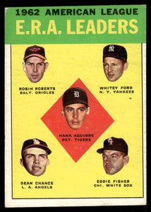 1963 Topps AL E.R.A. Leaders w/ Roberts/Ford HOF #6 VG-EX1963 Topps AL E.R.A. Leaders w/ Roberts/Ford HOF #6 VG-EX