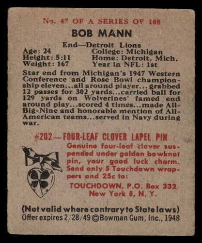 1948 Bowman Bob Mann #47 VG-EX
