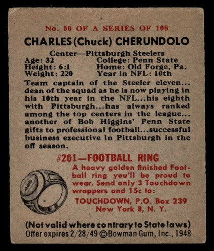 1948 Bowman Charles (Chuck) Cherundolo #50 VG-EX