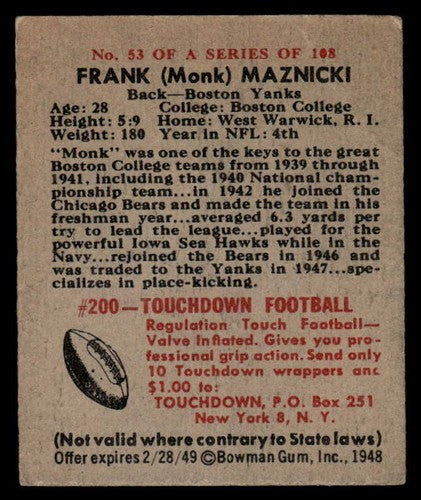 1948 Bowman Frank (Monk) Maznicki #53 VG
