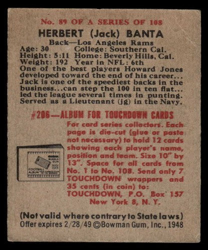 1948 Bowman Herbert (Jack) Banta #89 VG