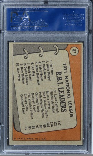1972 Topps N.L. R.B.I. Leaders TORRE/STARGELL/AARON HOF #87 PSA 7 NM